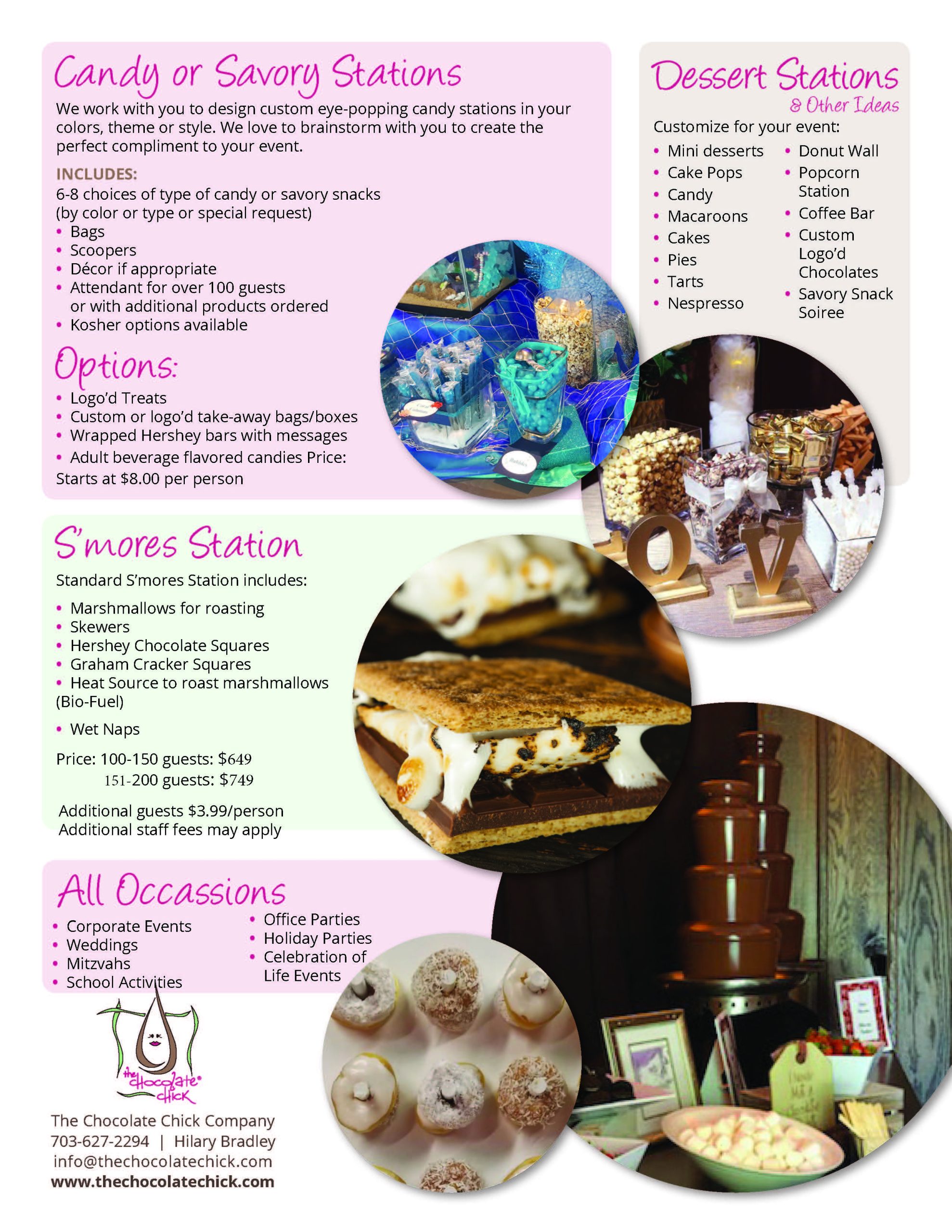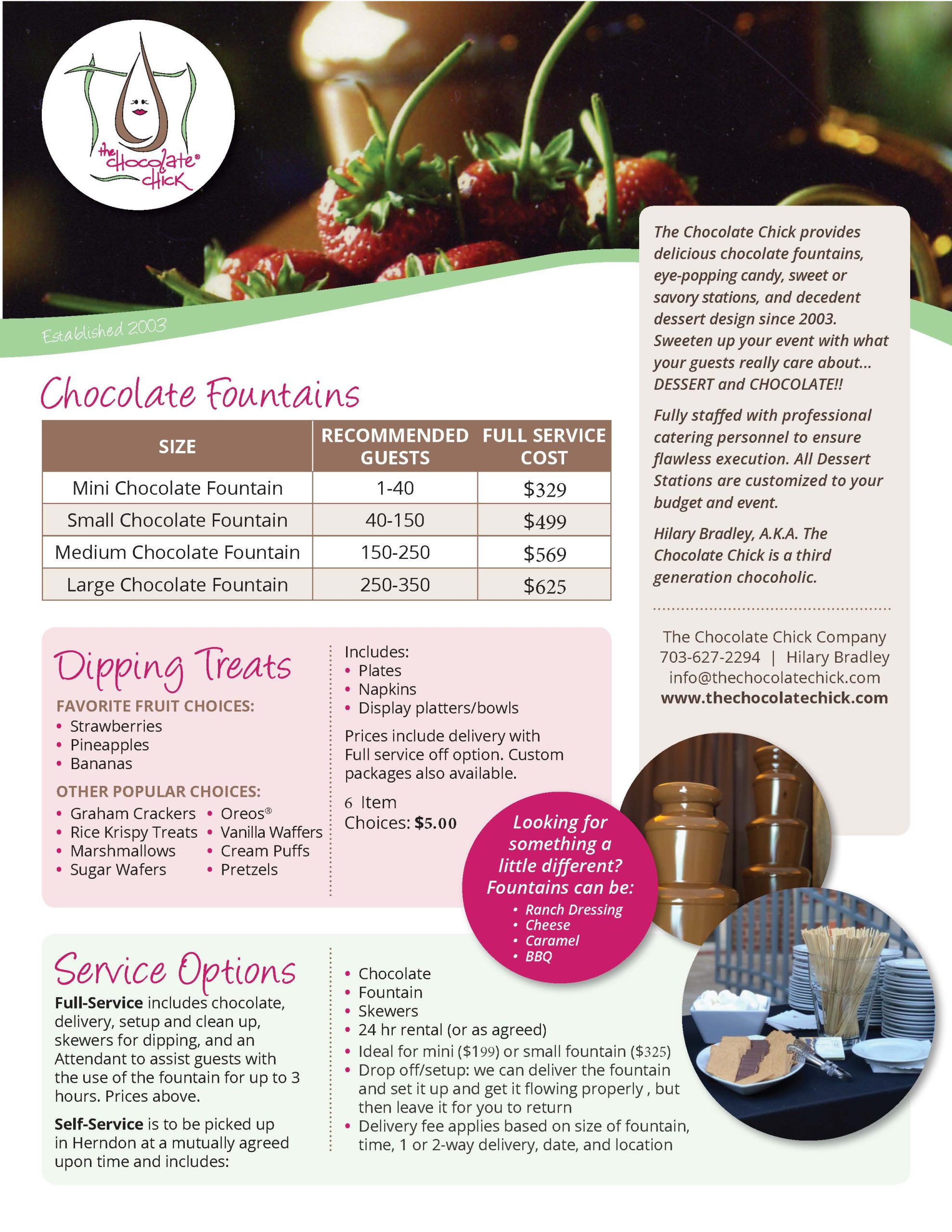 If ordering dipping items from The Chocolate Chick, the final head count and food payment is due 5 days prior to your event.